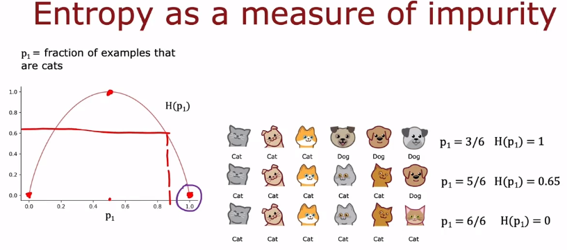 그 사이라면 얼마나 pure한지 어떻게 파악할까? -> entropy(as a measure of impurity)라는 개념이 도입된다.