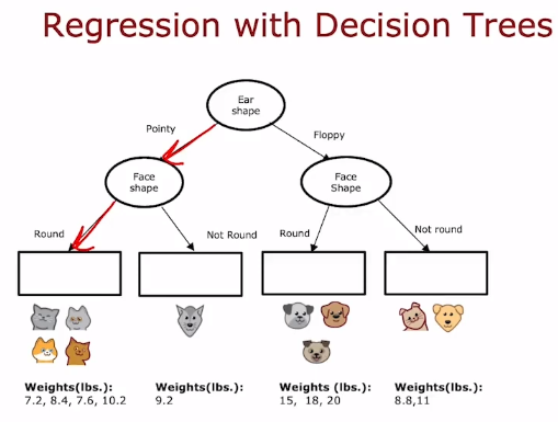 동일하게 의사결정트리를 진행하고, leaf node에 도달하면 해당 예시들의 Y값 평균을 구한다.